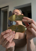 The Golden Gua Sha is a stainless steel facial sculpting tool designed to support circulation, lymphatic flow, and natural facial contouring.