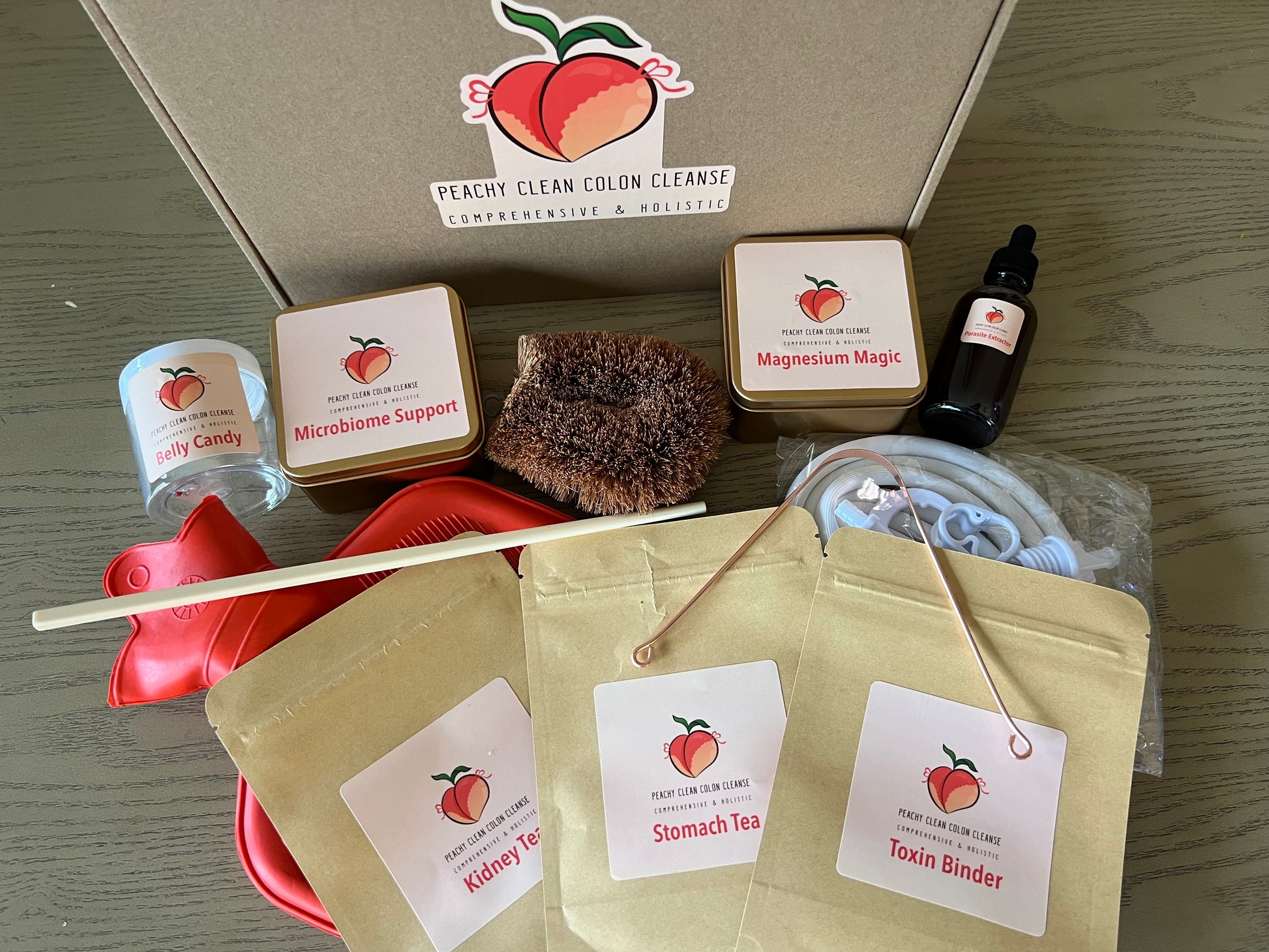 This is a 10 Day Curated Comprehensive Colon Cleansethat supports your detox pathways, and cleanses the colon by binding to and ridding your body of old feces, parasites, mold, bacteria, virus’, and toxins. Contains: enema bag, dry brush, copper tongue scraper, digging tool, toxin binder, magnesium magic, microbiome support, parasite extractor tincture, “belly candy” kidney and stomach herbs. Everything is 100% Organic, non-gmo, wildcrafted, mold and 3rd party tested, curated with highest quality products available that we are aware of.